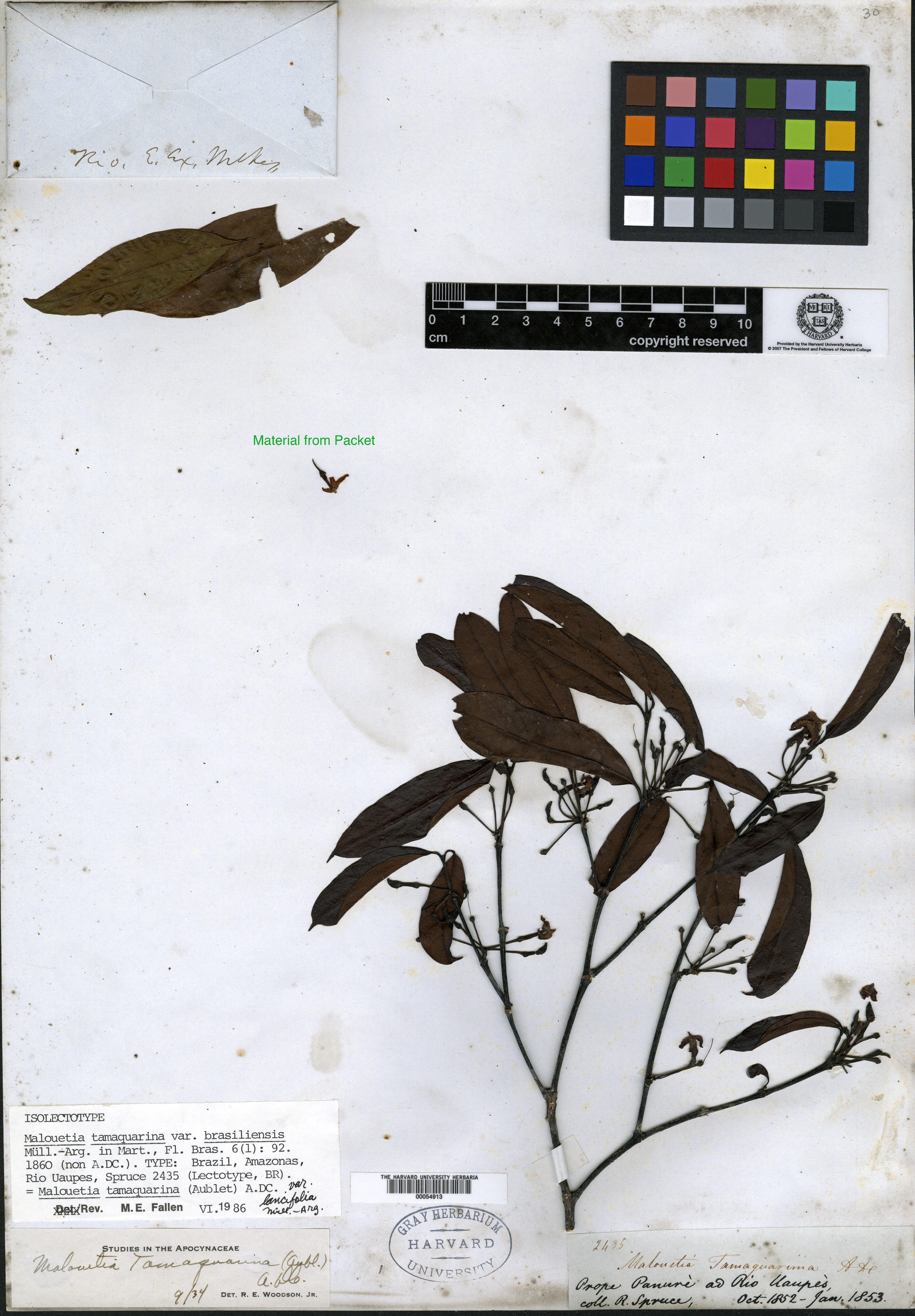 | Taxon Reference | (for  Malouetia tamaquarina var. brasiliensis Müller Argoviensis) Fl. Bras. [Martius] 1860. 6(1): 92. |
